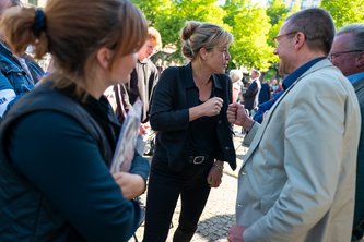 Wir durften am Sonntag, den 8. Mai, Annalena Baerbock, MdB, und Mona Neubaur, unsere Spitzenkandidatin für NRW, auf dem Laurentiusplatz willkommen heißen.