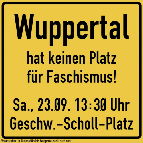 Im Anschluss werden wir als Grüne Gruppe dem Demo-Aufruf „Wuppertal hat keinen Platz für Faschismus“ des Bündnisses „Wuppertal stellt sich quer“ folgen und gemeinsam zum Geschwister-Scholl-Platz gehen.