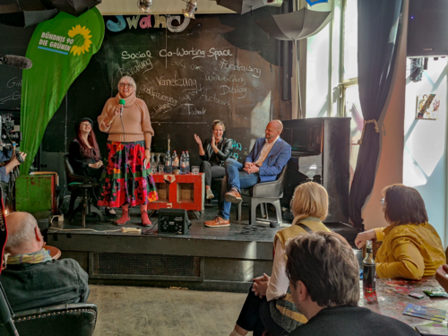 Am Sonntag, den 27. März 2022 fand mit großem Erfolg die Veranstaltung „Wer holt die Kultur aus der Krise?“ mit Claudia Roth, Mona Neubaur und Marc Schulz von den Grünen im Café Swane statt.