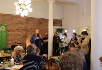 Ab 15 Uhr hatten die Gäste bei Speis & Trank die Gelegenheit, mit den drei Kandidierenden in den direkten Austausch zu kommen, Kontakte zu knüpfen und sich zwischen den einzelnen Stadtteilgruppen auszutauschen. Es wurden Ideen, Motivation und Inspiration geteilt, um die Zielvorstellungen für die Grünen Mitglieder und Interessierten in den kommenden Tagen und Wochen zu visualisieren.